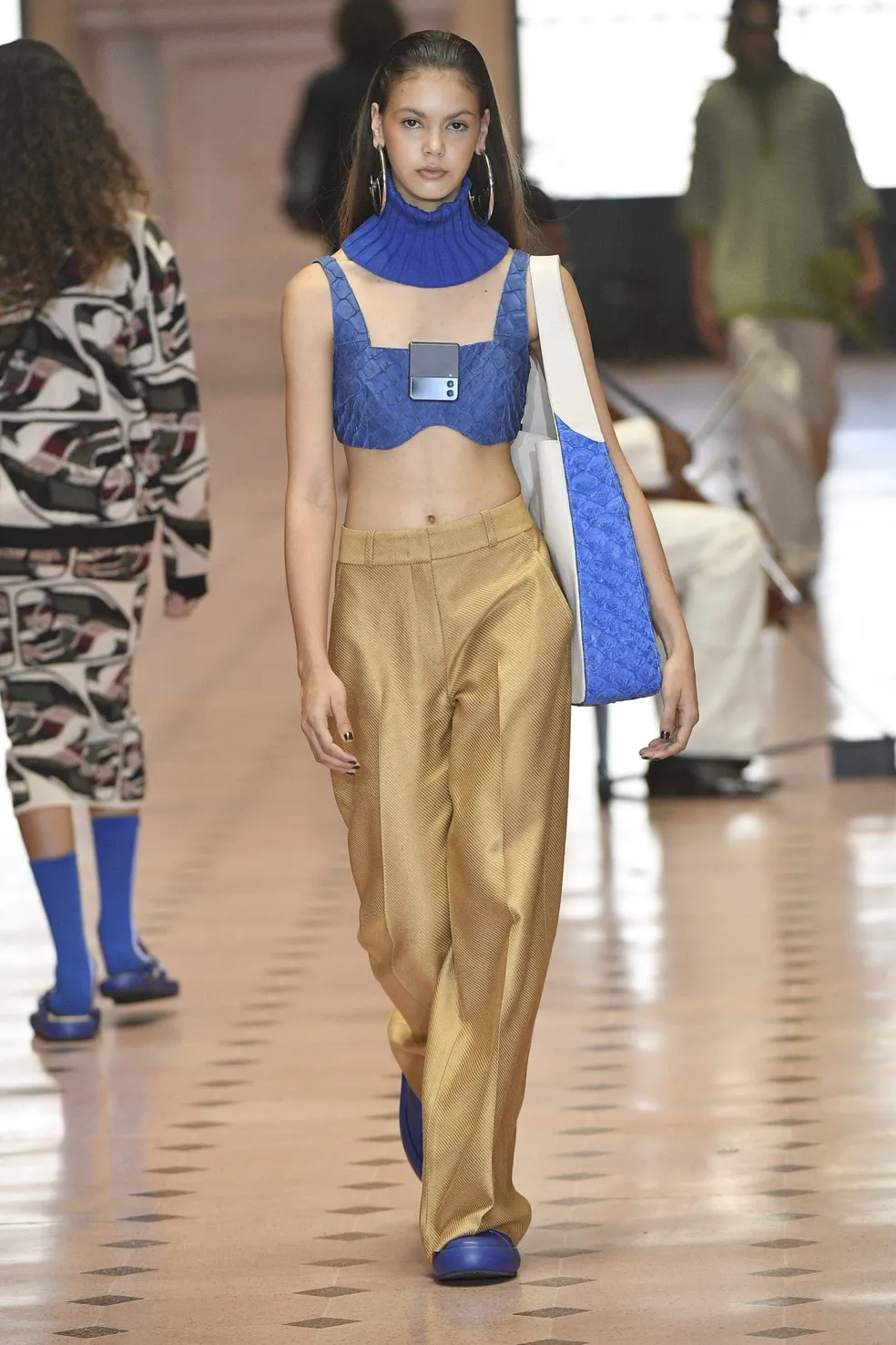 Um dos grandes destaques do desfile foi a nova bolsa do designer, inspirada em um galão de gasolina.
