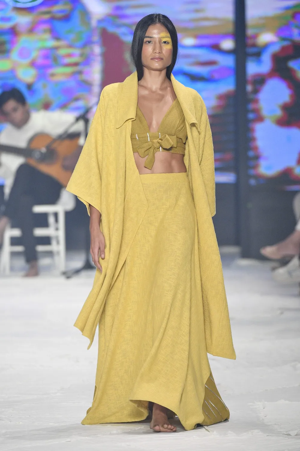A proposta do desfile foi valorizar a matéria-prima cultivada de forma responsável com alfaiataria, artes manuais e outros tipos de tecido como malha, gaze, tricoline, jacquard, sarja e denim.