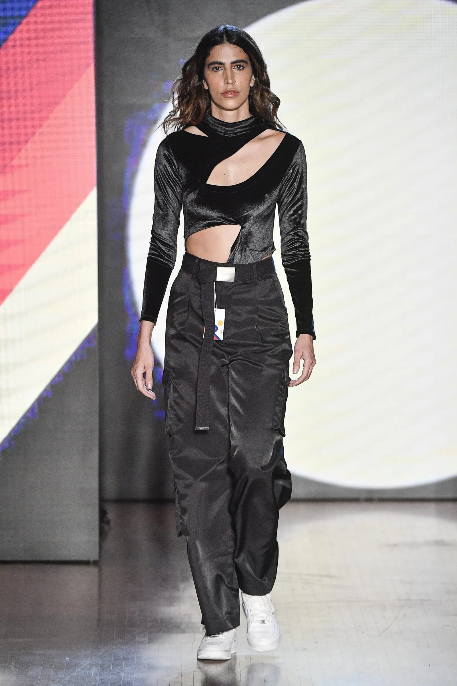 Elementos com muito brilho, fendas e recortes trouxeram uma narrativa que se encerrou con jeanswear de acabamentos destroyed e couro. A nova bolsa da marca, que reproduz o formato de um coração vermelho, foi apresentada ao final do desfile.