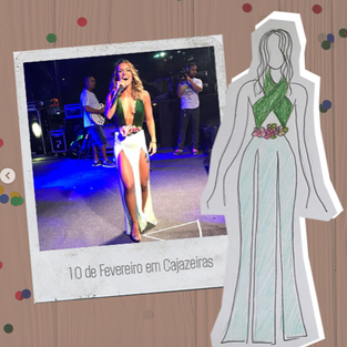 Os figurinos foram pensados, principalmente, em valorizar a beleza de Ju. Escolhemos tecidos leves, que tivessem efeito no palco e no trio e acessórios impactantes.